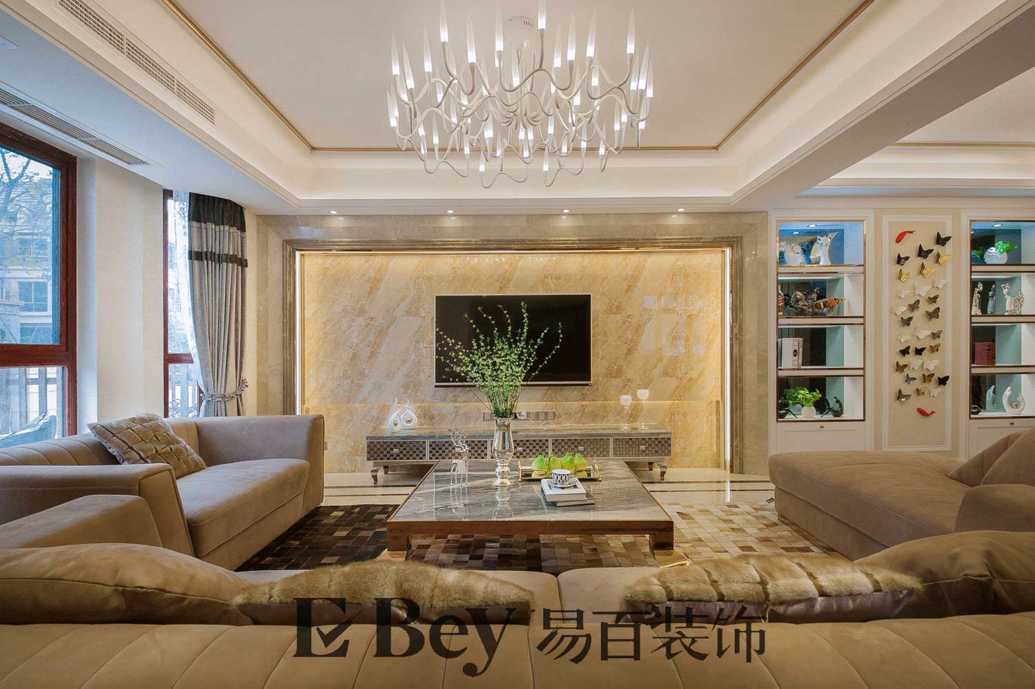 本案例坐落德陽市城南新片區-保利萊茵莊園,女主人是一位40多歲的時尚女性,喜歡港式簡約高品質風格。本案設計之初,業主告訴設計師居家人口較多。三代人的6口之家的大家庭,所以我們在做設計規劃的時候重新打破原有墻體界限;重新布局房間的格局和生活功能儲藏功能;以此來滿足6口之家的生活及習慣。客廳餐廳我們把原有的錯層設計填平,增大客廳視覺減少安全隱患。餐廳我們采用開放式的設計以此與客餐廳無障礙聯通。整個客廳色系我們多采用家的溫暖色彩,以此營造出溫馨的居家氛圍。大理石和軟裝的結合讓整個客廳檔次質感得以提升。精細挑選的燈飾讓整個空間顯得更加的靈動和充滿質感。