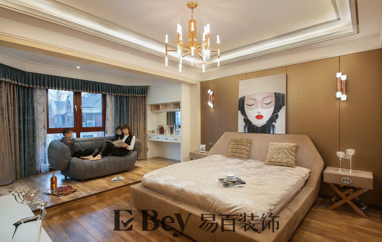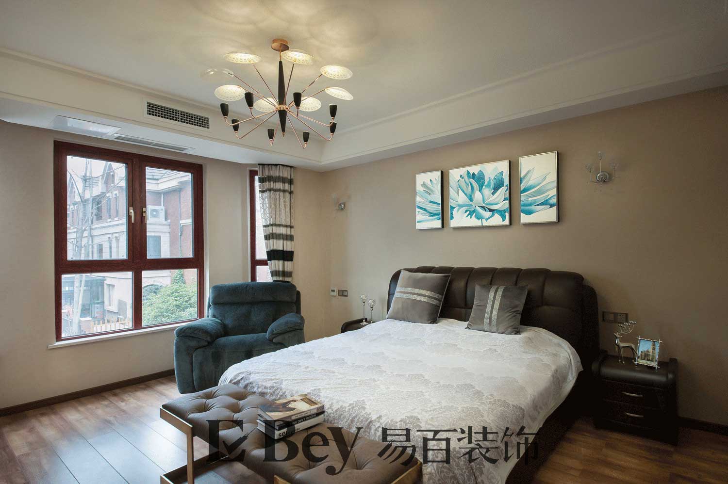 臥室的打造我們采用簡潔而明快的手法讓自然的光線能盡量的灑進房間。整體空間更加靈動而溫暖。通過我們的精心打造讓總體居家在擁有別墅的高檔氣息中充滿愛和居家的味道。