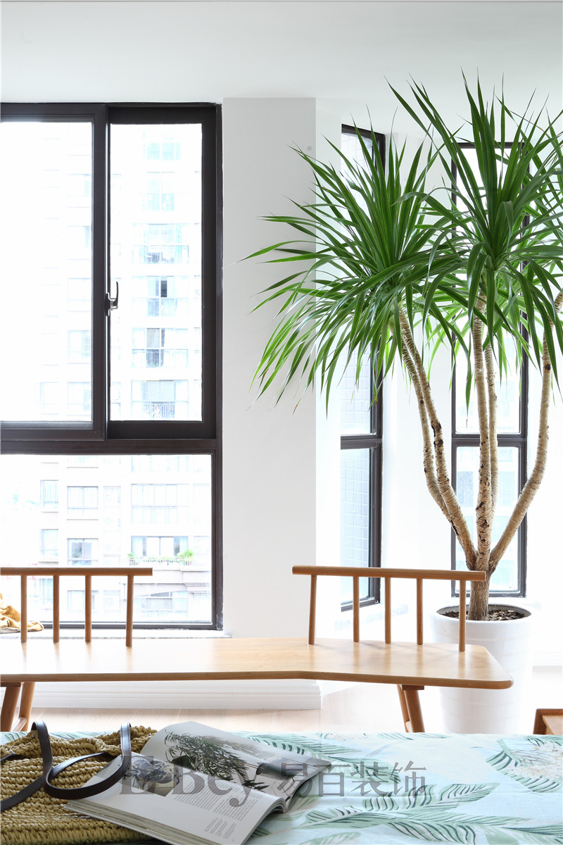 角落和陽臺的綠植,讓整個空間顯得健康有活力,陽光自然流暢地傾灑進來,光影交錯,讓人倍感舒適和愜意