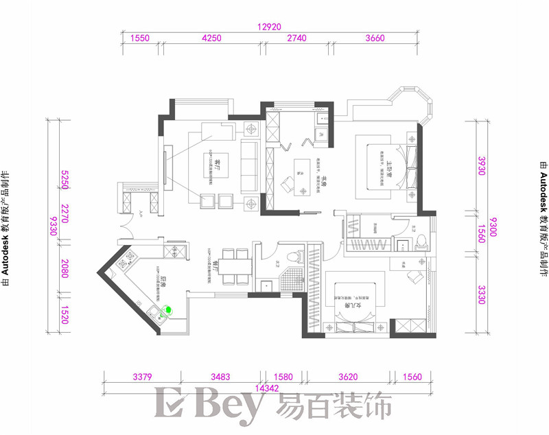本案原始為三室,但是業主只考慮自己和女兒兩個人居住,所以在規劃的時候對墻體進行了局部改造,讓空間得到充分利用。