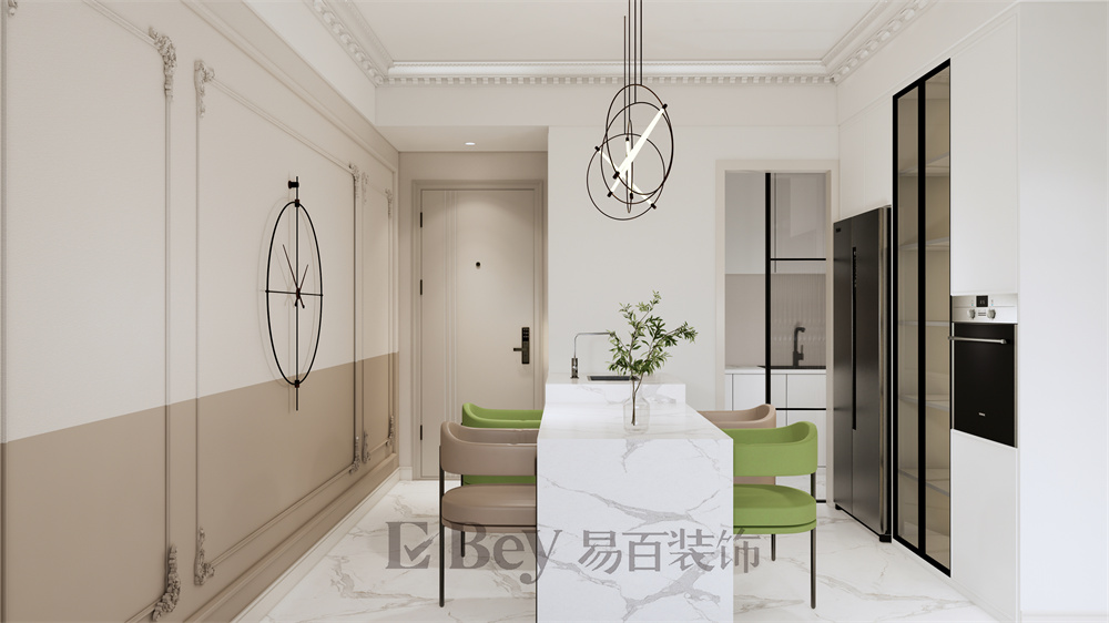 設計師采用輕法式復古的浪漫風情,拒絕厚重的大面積雕花,用純凈的奶油白作為主色調,結合現代的元素與法式的碰撞打造出別樣舒適的家。