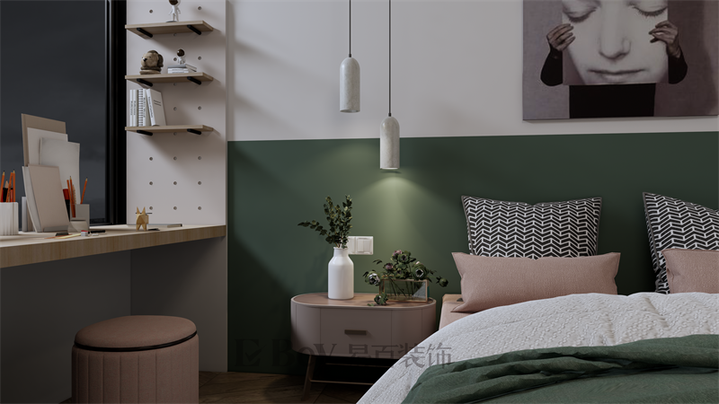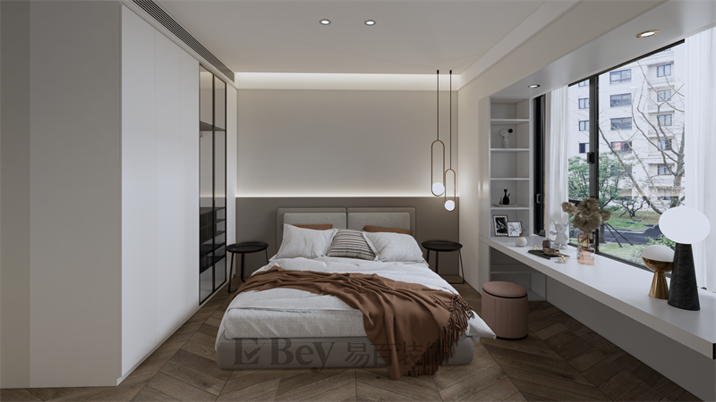 次臥摒棄了冗余的配飾,讓休憩的空間始終保持寧靜雅致。